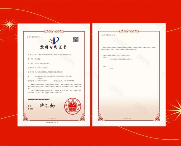 榮獲礦用裝藥器專利證書